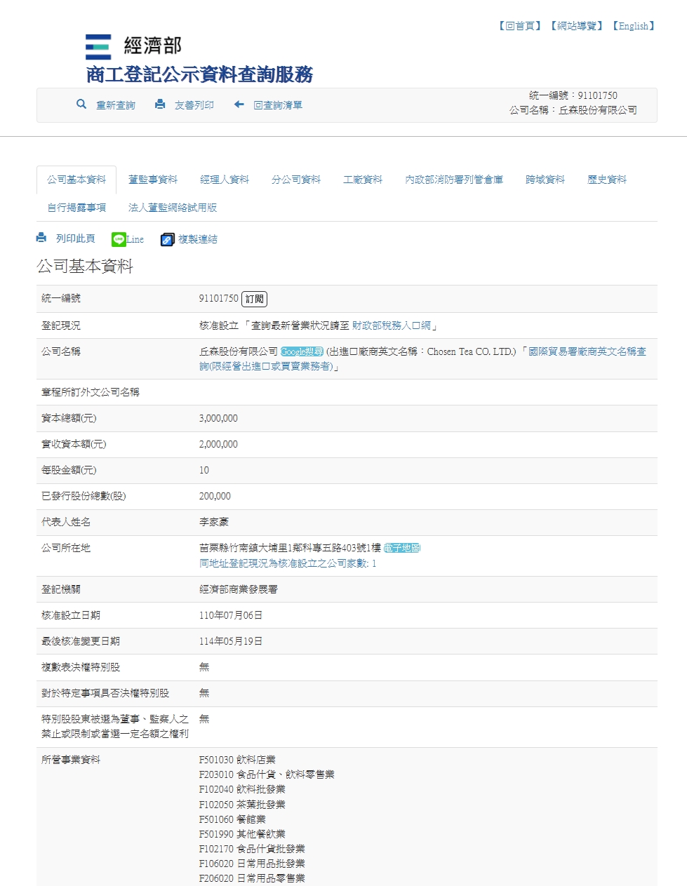 企業提供相關公司資料與經濟部公司資料查詢系統一致。