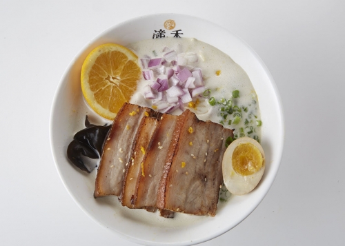 外觀呈現濃白濁的泡系柚雞白湯,擁有淡淡柑橘清香及甜味,頂頭灑上的黃檸檬皮很加分,...