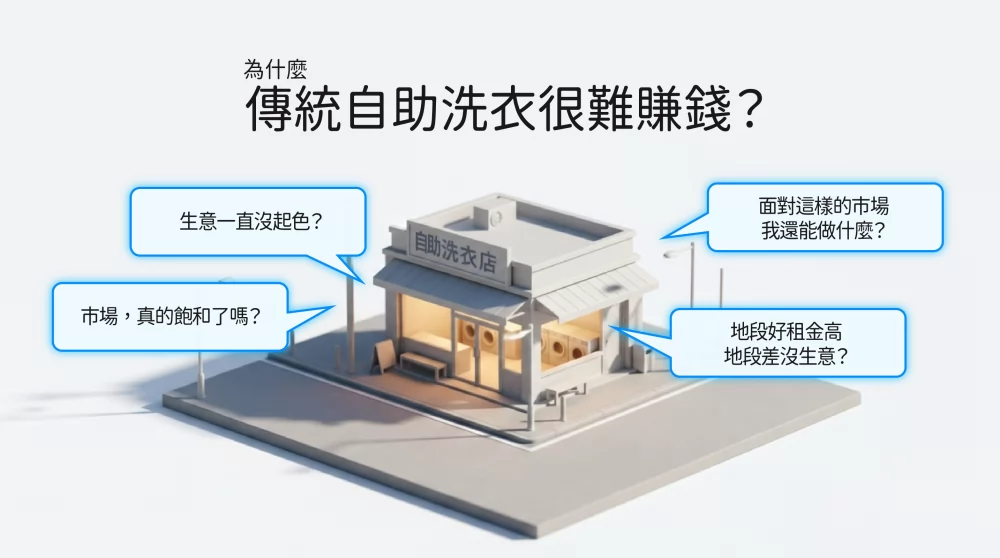 從2000多家自助洗衣店觀察到,傳統的店面形象、觀感普遍不佳,速喜樂跳脫傳統的自助洗衣形象及模式。